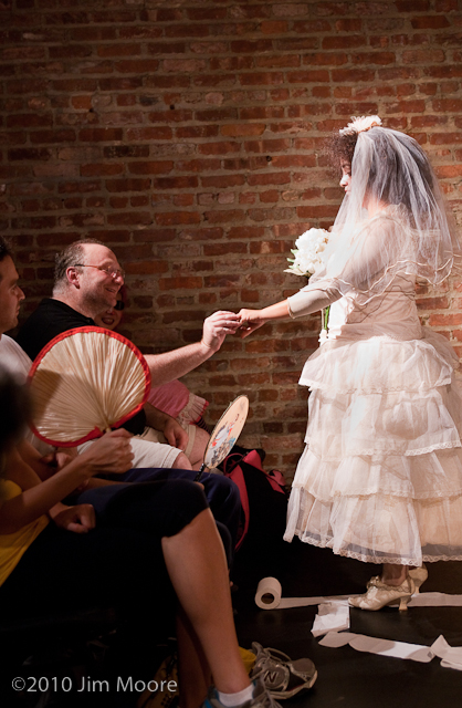 这是一场由现场的观众参与和共同完成的婚礼和演出。女演员会来到观众席,挑选一位她的“新郎”,邀请上台和她共同完成这场演出和婚礼。除了新郎,还会挑选牧师和伴娘。