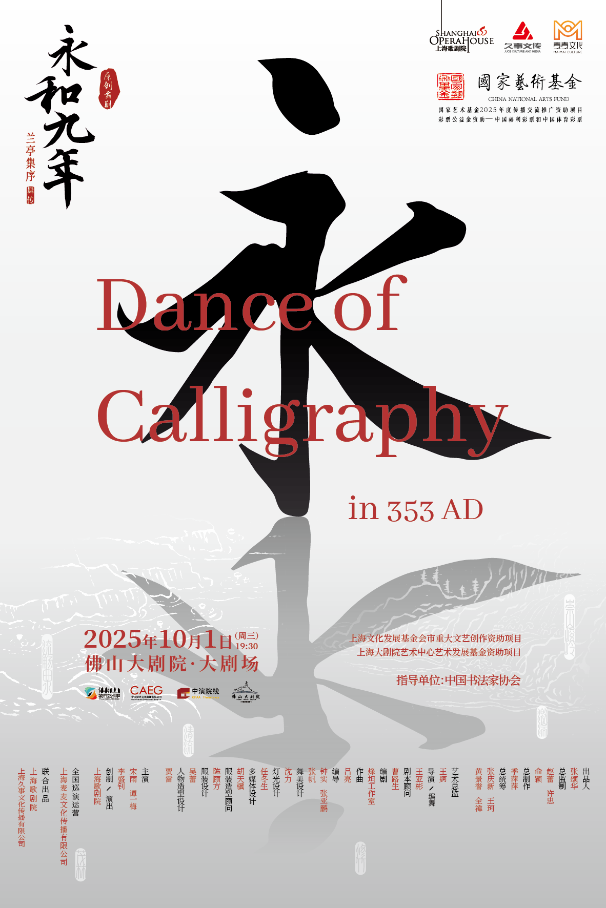 上海歌剧院精心创排的原创舞剧《永和九年》--兰亭集序·舞传,作为国内首部全景式展现书法作品传世历程的舞剧,灵感来自于中华文化瑰宝《兰亭集序》,在全景展现这部天下第一行书从诞生到传世的非凡历程中,向世界展示出源远流长、博大精深的中华优秀传统文化,传扬经典,讲好世界文化瑰宝的中国故事。