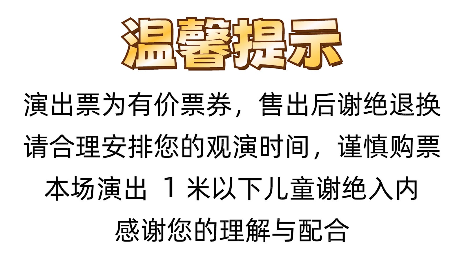 *请观众提前半小时入场,1米以下儿童谢绝进场。对号入座,严禁跨层。